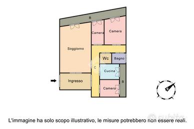 L'immobile vede la seguente distribuzione interna: ingresso, disimpegno, cucina abitabile, spazioso soggiorno, tre camere da letto e doppi servizi.