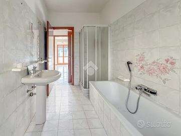 L'immobile vede la seguente distribuzione interna: ingresso, cucina abitabile, soggiorno, tre camere da letto, doppi servizi entrambi finestrati uno con vasca e l'altro con box doccia e infine un ripostiglio.
