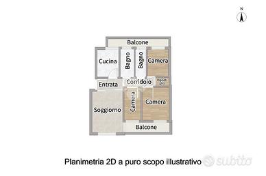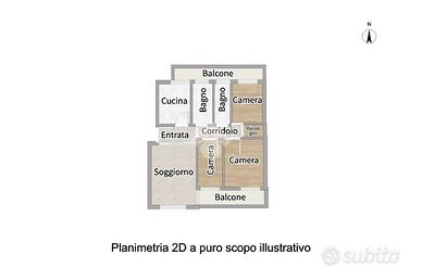 Tutti gli ambienti presentano un affaccio su balcone.