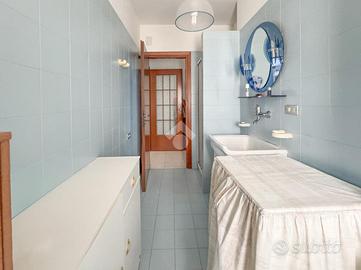 L'immobile vede la seguente distribuzione interna: ingresso, cucina abitabile con affaccio su balcone, soggiorno con affaccio su terrazzo, tre camere da letto tutte con affaccio, due bagni finestrati uno con vasca e l'altro con box doccia e infine un ripostiglio.