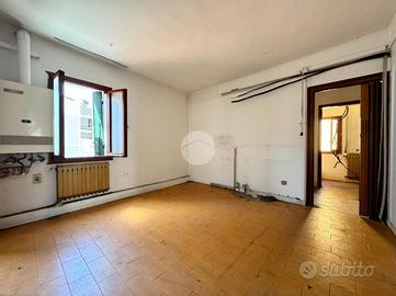 CHIOGGIA: Nel cuore del Centro Storico, con una vista panoramica su Corso del Popolo, proponiamo in vendita un ampio appartamento trilocale situato in una storica palazzina di sole due unità ristrutturata recentemente esternamente.