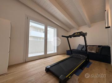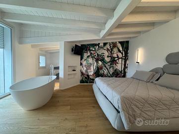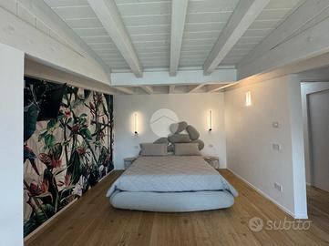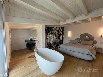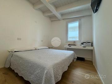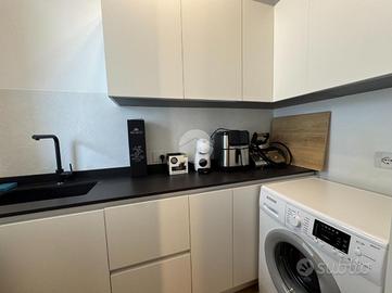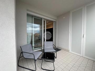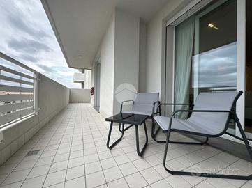 Splendido appartamento al quinto piano con ascensore, in un condominio moderno di recente costruzione. L'ingresso si apre su una luminosa zona living open space con cucina a vista, arricchita da rifiniture di pregio e con doppio accesso a un ampio poggiolo abitabile. La zona notte,separata dal living, comprende un bagno di servizio con ampio box doccia, una camera matrimoniale, una cameretta e una lussuosa camera padronale. Quest'ultima è dotata di bagno privato, cabina armadio e accesso a un secondo poggiolo con vista mare. Infine, l'immobile si completa con un comodo garage al piano terra.