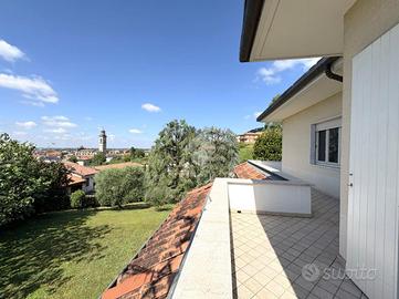 Tutto il piano è circondato da una grande balconata oltre a giardino privato che gira intorno all'intera abitazione, offrendo spazi esterni vivibili, ideali per momenti di relax all'aperto o per godere della tranquillità della zona.