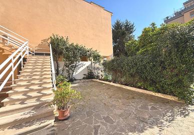Nel cuore di Ciampino, nella tranquilla località di Mura dei Francesi, è disponibile un appartamento di 90 mq situato al primo ed ultimo piano di un edificio bifamiliare. Si accede all'appartamento attraverso una scala privata. Internamente ci accoglie un ampio soggiorno con cucina a vista, luminoso. La zona notte è caratterizzata da una camera da letto matrimoniale e due camerette. L'appartamento è dotato di due bagni, uno con vasca e uno con doccia. Tutti gli ambienti affacciano e/o hanno uscita su un balcone angolare che abbraccia tutta la casa. Ha un ottima esposizione. Completa la proprietà un area di 27 mq al piano terra da poter utilizzare o come giardino da arredare con gazebo e tavolo, oppure come area parcheggio per una piccola autovettura. Questo spazio all'occorrenza può essere utilizzato anche come area giardino. L'immobile è in perfette condizioni sia interne che esterne. E' dotato di climatizzatori nelle camere da letto.