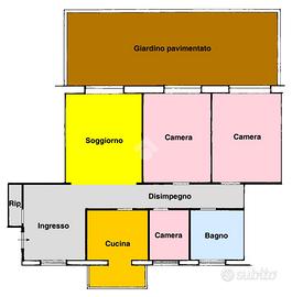 Il bagno è finestrato e ben organizzato. Completa la proprietà un ampio spazio esterno/giardino pavimentato, perfetto per pranzi e cene all'aperto o per godere di momenti di relax in totale privacy.