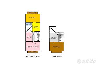 * secondo piano composto da cucina abitabile adiacente ad un balcone, soggiorno, bagno, due camere di cui una con cabina armadio e balcone;