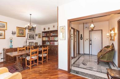 L'ingresso conduce al salone doppio rifinito in parquet con uscita sul terrazzino principale; la zona giorno è completata da un ampia cucina. Il disimpegno conduce alla cameretta, al bagno con vasca e alla camera padronale con terrazzino dal quale si può godere della vista sull'arco alpino