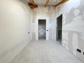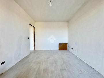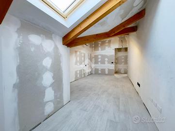 L'appartamento gode di un Ingresso, Luminoso Soggiorno con ampio Balcone in Loggia godibile (profondo 1.60), Cucina Abitabile ed un Bagno; Data la grande altezza disponibile pari a 3.60 vi e' la possibilita' di creare 3 spaziose Camere da Letto e un Secondo Bagno al Piano Terzo Sottotetto rifinito con caratteristiche travi a vista.