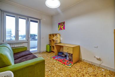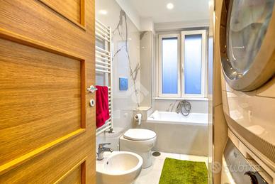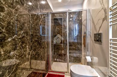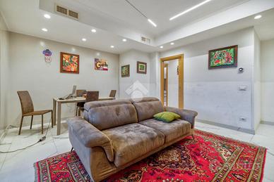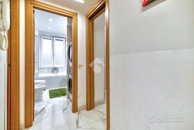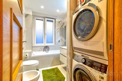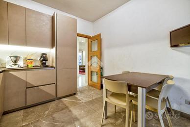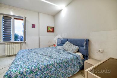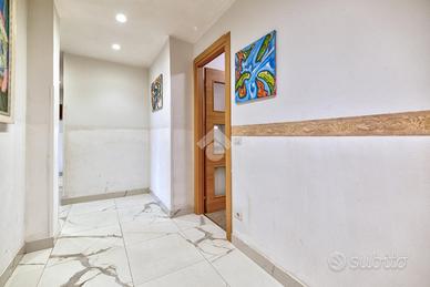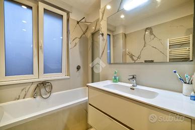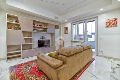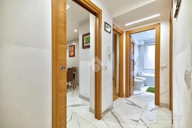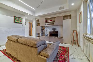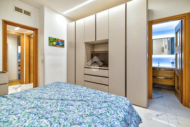 L'appartamento è dotato di un impianto di aria condizionata canalizzata: a differenza di un sistema centralizzato condominiale, qui l'impianto è privato e autonomo, con macchinari nascosti nel controsoffitto e diffusione dell'aria tramite bocchette, così da garantire comfort in ogni ambiente senza split a vista. Completano le dotazioni gli infissi in PVC con doppio vetro, un armadio a muro nel disimpegno e un comodo ripostiglio sul balcone principale.