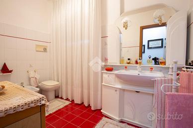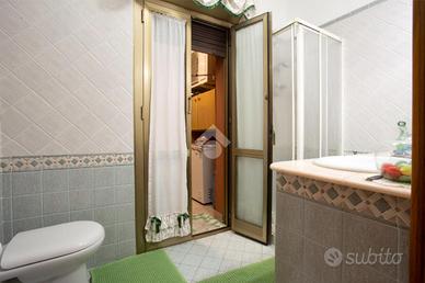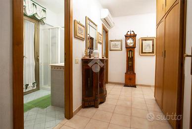 Da questo punto il corridoio crea un angolo verso destra, accompagnando alla parte conclusiva dell'abitazione: sulla parete sinistra è collocato il secondo bagno finestrato, dotato di vasca, mentre in fondo al corridoio si apre la camera matrimoniale, luminosa e ben proporzionata.
