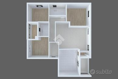 Tornando sul corridoio, sul lato sinistro è presente una prima camera; a seguire incontriamo il bagno con doccia e accesso a un terrazzino verandato adibito a lavanderia. Poco più avanti, sempre a sinistra, si trova la cameretta.