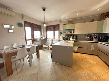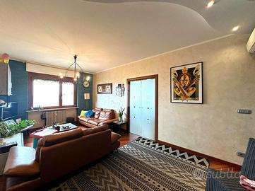 Completano la soluzione: tre ampi balconi con tende veranda estive/invernali, cantina e box auto a parte.