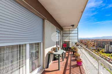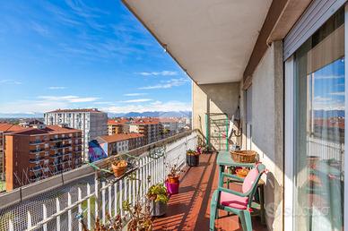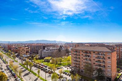 Appartamento situato al piano alto, caratterizzato da una splendida vista panoramica sulle montagne. La tripla esposizione garantisce un'ottima luminosità. Dal portoncino blindato si accede ad un comodo ingresso che distribuisce in modo funzionale tutti gli ambienti interni. Dal soggiorno con angolo cottura si accede al primo balcone con un comodo ripostiglio e l'attacco per la lavatrice. Il salone, di generose dimensioni, consente di realizzare un ambiente confortevole con divano angolare e parete attrezzata, con affaccio su un secondo balcone di generose dimensioni dove è possibile posizionare dei comodi divanetti da esterno. La zona notte composta da due camere da letto spaziose, entrambe versatili e con possibilità di creare una cabina armadio o un bagno in camera. Il bagno con finestrata è dotato di vasca. La soluzione è dotata di infissi con doppio vetro, che garantiscono un buon isolamento termico e acustico. Le tapparelle sono motorizzate. I serramenti interni sono di ottima qualità. L'ampia metratura permette di personalizzare gli spazi interni. La posizione è particolarmente strategica: comoda a tutti i principali servizi e a pochi passi dalla fermata della metropolitana "Paradiso" . Completa la soluzione una cantina di pertinenza. Disponibilità immediata. Per informazioni contattaci al numero oppure scrivi a to2i3@tecnorete.it. Se vuoi una valutazione professionale gratuita del tuo immobile affidati ai nostri consulenti immobiliari.