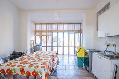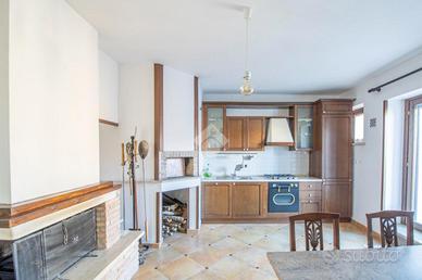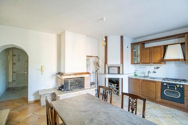 cucina abitabile dotata di camino e forno a legna, soggiorno, bagno con doccia, 2 camere da letto di cui una dotata di bagno interno con doccia , ampia zona studio e veranda dotata di doppia corte interna privata accessibile sia dall'interno che dall'esterno.