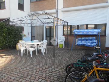 Porto Garibaldi: in zona tranquilla comoda al mare ed ai servizi proponiamo appartamento sviluppato interamente al piano terra. Ingresso indipendente su ampio giardino con vari posti auto e possibilita' di vita all'aperto. Grande patio verandato adibito a soggiorno con angolo cottura, tre camere da letto e bagno con doccia. Impianto di riscaldamento autonomo, senza spese condominiali. Rif.103