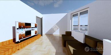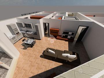 L'ingresso apre su una comoda zona living open space, ideale per accogliere cucina e soggiorno, con accesso diretto a uno spazio esterno privato perfetto per il relax.