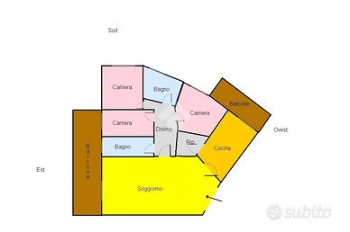 Appartamento posto al quarto piano, composto da: 1 ingresso/soggiorno, 1 cucina abitabile, 1 ripostiglio, 1 corridoio zona notte, 3 vani letto, 2 bagni, 1 terrazzino e 1 balcone.