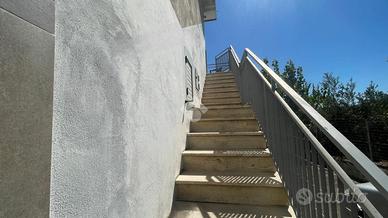 Dalla corte comune abbiamo accesso attraverso le scale esterne al primo piano dove insiste l'abitazione.