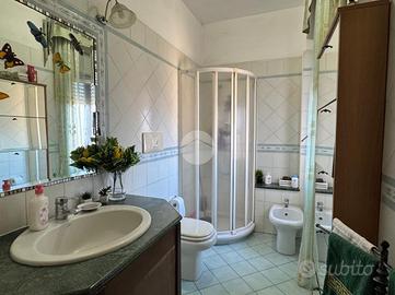 L'appartamento composto da quattro locali si presenta in ottime condizioni interne al momento così distribuito: una sala da pranzo con angolo cottura a vista con affaccio su balconata lato mare, 2 comode camere da letto doppie, di cui una con lungo balcone con esposizione lato montagna, un bagno completo e una stanza jolly ad oggi utilizzata come ampio salotto ma che all'occorrenza potrebbe essere trasformato in camera per gli ospiti o sala hobby; infine un comodo ripostiglio esterno.