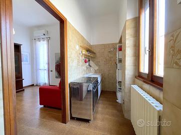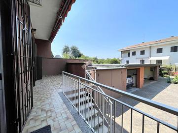 All'interno di una villa bifamiliare proponiamo in vendita un appartamento posto al piano rialzato, completo di box, posto auto coperto, due cantine pertinenziali e area cortilizia comune indivisa, in parte pavimentata e in parte a verde. L'appartamento è accessibile sia dalla strada sia dall'area cortilizia interna. Il primo ingresso avviene tramite un corpo scala privato che conduce a un pianerottolo con due porte d'accesso. Pur trattandosi di un'unica unità immobiliare, la disposizione attuale la rende di fatto suddivisa in due appartamenti: il primo composto da due locali con cucina abitabile e il secondo da due locali con cucinotto. La soluzione si presta quindi sia a essere utilizzata come un unico grande appartamento, sia come due unità più piccole. Nel seminterrato dell'edificio sono presenti due cantine di circa 25 mq complessivi, entrambe accessibili dall'area cortilizia. Completano l'offerta un'autorimessa singola e un posto auto coperto privato situati all'interno della stessa area indivisa. Il riscaldamento è autonomo e non sono previste spese condominiali, poiché non è presente un amministratore. Le spese relative all'acqua potabile, alla manutenzione dell'area verde e della pavimentazione esterna, così come ogni altra spesa di gestione, vengono condivise con l'appartamento del piano superiore. Grazie alla sua conformazione, l'immobile è ideale per due nuclei familiari che desiderano vivere vicini, oppure per chi cerca un'abitazione di ampia metratura distribuita su un unico livello. Con interventi di ristrutturazione mirata, inoltre, potrebbe essere possibile trasformare l'unità più grande in un trilocale. La zona in cui è situato l'immobile è una delle più servite del paese: in pochi minuti a piedi si raggiunge Via Novara, ricca di servizi. Nelle vicinanze si trovano fermate degli autobus da e per Milano e numerosi negozi per ogni esigenza. L'area è molto apprezzata dalle famiglie grazie alla presenza, a pochi metri, di scuola media, scuola