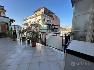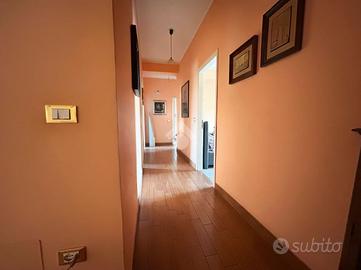 L'appartamento ha una metratura di circa 150 mq ed è cosi diviso: entrando ci accoglie un soggiorno, dotato di condizionatore, che è servito da un terrazzo con esposizione nord est, proseguendo troviamo la zona cottura ed a servizio un comodo ripostiglio. Un disimpegno ci conduce nella zona notte dove troviamo tre comode camere da letto, una matrimoniale, una seconda camera con cabina armadio ed una servita da balcone. A servizio della casa si trovano due bagni entrambi finestrati.