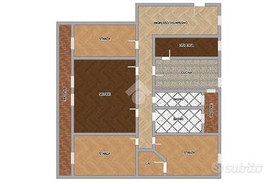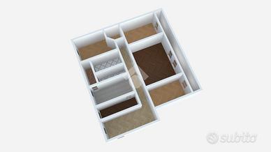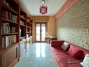 L'appartamento è composto da 3 comode stanze, un doppio salone, una cucina abitabile con dispensa e due bagni finestrati.
