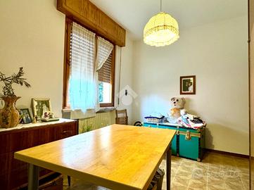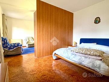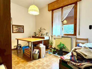 L'appartamento si sviluppa al piano terra con spaziosa zona soggiorno, cucina abitabile, due camere matrimoniali, studio e bagno. Dalla zona giorno si accede direttamente al grande giardino privato, che conferisce una piacevole continuità tra gli spazi interni ed esterni. Al piano inferiore si trovano la taverna di generose dimensioni, un ambiente versatile e accogliente perfetto per molteplici utilizzi, il garage doppio e la cantina.