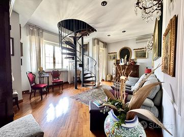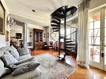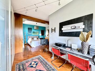 Dalla zona giorno si accede, tramite una scala, alla parte superiore dell'appartamento dove troviamo un ampio open space con balcone utilizzabile come studio o area hobby.