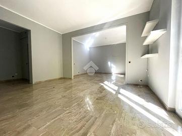 Ingresso, ampio soggiorno in affaccio sul balcone, cucina indipendente in affaccio sul secondo balcone, una camera da letto matrimoniale, una camera doppia, una camera da letto singola, doppi servizi finestrati e comodo ripostiglio.