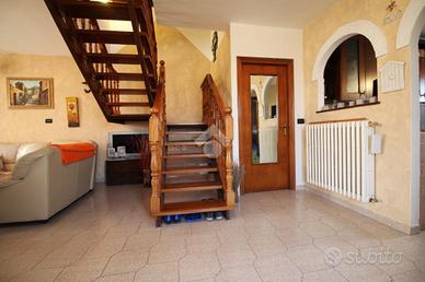Questa deliziosa porzione di casa bifamigliare offre un'atmosfera accogliente e una praticità senza pari. L'accesso è regolato da un cancello automatizzato comune, mentre una scala privata conduce alla residenza in vendita, garantendo un tocco di esclusività.