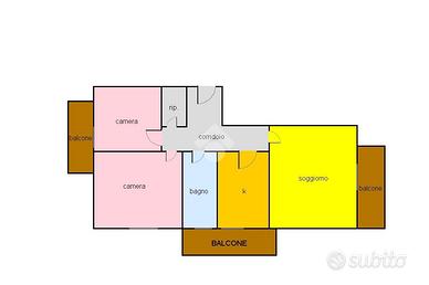 All'interno l'ingresso è sul corridoio che separa la zona giorno composta da cucina abitabile, comodo soggiorno, entrambi gli ambienti serviti da balconi; dalla zona notte.
