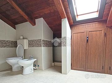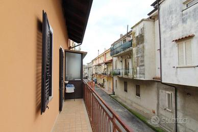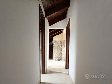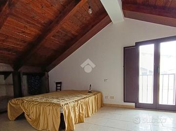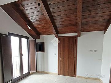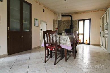 In centro paese, appartamento completamente rifinito con ingresso indipendente. In via centrale ma in contesto riservato, abitazione al primo piano con ingresso autonomo, oltre a sottotetto già rifinito e magazzino al piano terra. La soluzione si caratterizza da spazi ampi e ben curati, una buona organizzazione dei locali interni con il riutilizzo di tutte le angolazioni. Piccolo spazio adibito a ripostigio sia accanto all'angolo cottura sia all'esterno, con balcone in parte chiuso. Il salone, di comoda metratura, è il fulcro della casa, adatto ad accogliere gli ospiti. Consente l'ingresso sul corridoio dove si dislocano le due camere matrimoniali di cui una con accesso diretto al balcone. In ultimo una camera singola da adibire in futuro anche ad uso studio. L'immobile presenta ad oggi porte per lo più scorrevoli ed infissi con doppi vetri camera, oltre predisposizione per l'impianto di riscaldamento e ventilatore da soffitto in tutte le stanze. Adatto a famiglie numerose, la proprietà gode inoltre di utile sottotetto adibito ad locale deposito, rifinito con tetto in legno ed armadietti su misura, oltre box con doppio ingresso sia dal portone dell'abitazione e sia dall'esterno con serranda.