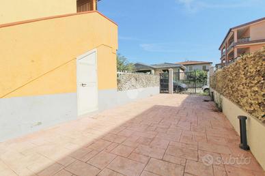 Presenta una corte di proprietà pavimentata con annesso ripostiglio, riserva d'acqua con allaccio sia alla rete comunale e sia al pozzo privato, doccia esterna con proprio boiler e fontanella decorativa.