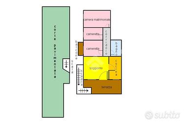L'accesso all'abitazione avviene attraverso la scala esterna che conduce alla terrazza, comoda per passare le calde sere d'estate ed è caratterizzata dalle tende da sole che garantiscono privacy.