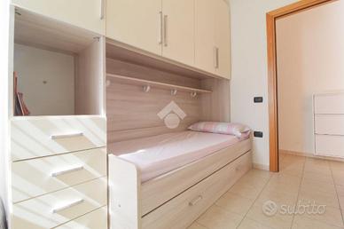 Dal corridoio si dislocano le due camerette, di cui una è dotata di balcone, la camera matrimoniale ed il bagno.