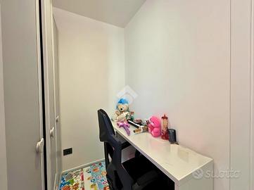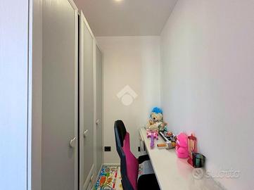 La disposizione interna comprende: una cucina separata dal soggiorno, due camere da letto, uno studio adibito a camera degli ospiti e un bagno. La presenza di una mansarda e di una lavanderia aggiunge funzionalità e spazio extra. Due balconi offrono un affaccio piacevole e luminoso. Completa la proprietà un posto auto riservato.
