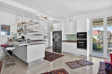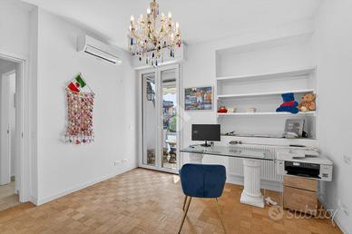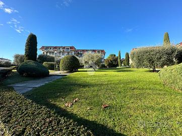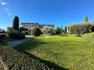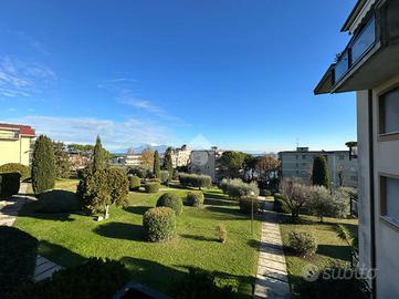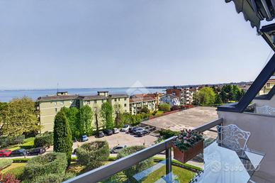 Inserito all' interno di storico complesso ubicato davanti al lago, in posizione esclusiva, grande appartamento posto all' ultimo piano con vista lago introvabile. Il complesso dispone di grande parco condominiale e la palazzina è provvista di ascensore. L' appartamento si caratterizza, oltre che per la vista davvero unica, per gli spazi molto generosi e la qualità della recente ristrutturazione che ha previsto il rifacimento dei serramenti, dell' impianto elettrico, dei due servizi, delle porte interne. L' ingresso apre sulla grande zona living in cui trova spazio anche la cucina a vista. L' appartamento è angolare e gode, pertanto, di vista sul lago da diversi lati dell' abitazione. La zona notte ospita le due camere matrimoniali, il locale adibito attualmente a studio, e due servizi. Al piano terreno completano la proprietà il garage (con sezionale elettrica) e la cantina.