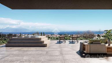 In una posizione tranquilla e riservata, circondata dal verde, sorge Garda Retreat: un elegante complesso residenziale pensato per chi desidera vivere in un ambiente di prestigio, confortevole e riservato. Il progetto prevede 10 esclusive unità abitative, ciascuna con giardino privato o terrazza vista lago, e la possibilità di aggiungere una piscina privata. Gli appartamenti, ampi e luminosi, sono disponibili con due o tre camere da letto, doppi servizi e doppi garage. Al secondo piano, gli attici rappresentano l'espressione più alta del comfort: spettacolari terrazze panoramiche, piscina privata e una vista impareggiabile sul lago. Ogni residenza è personalizzabile. Appartamento 10 Situato al secondo e ultimo piano, l'appartamento n.10 offre spazi ampi e ben distribuiti, pensati per garantire il massimo comfort e vivere in armonia con l'ambiente circostante. La zona giorno, luminosa e accogliente, prevede la possibilità di separare la cucina e si apre su un grande terrazzo con piscina privata, ideale per momenti di relax all'aperto con una vista incantevole sul lago. La zona notte comprende una camera matrimoniale, due camere doppie, due bagni, un comodo ripostiglio e due garage affiancati al piano interrato. Un'abitazione esclusiva dove design, privacy e panorama si incontrano per offrire un'esperienza abitativa unica nel cuore del Lago di Garda.