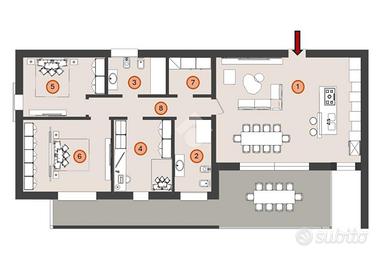 La soluzione proposta è un quadrilocale al piano primo, dotato di ascensore, caratterizzato da un'ampia zona living di 40 mq, tre camere da letto di cui la padronale di oltre 16 mq, due bagni ed un vano tecnico adibito a lavanderia.