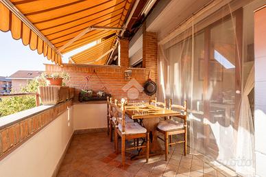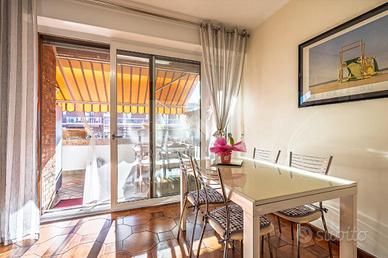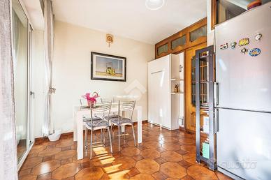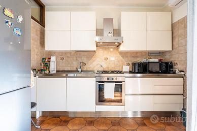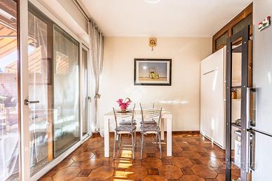 L'edificio è stato oggetto di un intervento completo che ha previsto l'installazione di pannelli solari, la sostituzione integrale degli infissi e, a breve, l'aggiunta di un ascensore che garantirà maggiore comfort e accessibilità. L'ingresso si apre su un accogliente soggiorno che conduce alla cucina abitabile, resa luminosa da ampie vetrate scorrevoli affaccianti su un terrazzo vivibile e arredabile, perfetto per momenti di relax e convivialità all'aperto.