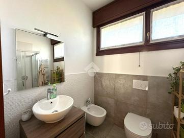 L'immobile è dotato di doppio climatizzatore e una caldaia nuova, assicurando efficienza energetica. Completano la proprietà un box elettrico e due posti auto esterni.