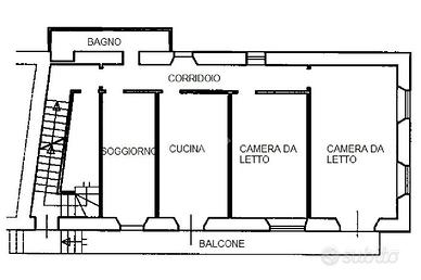 L'ingresso avviene direttamente su un corridoio che conduce a tutte le stanze.