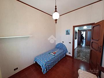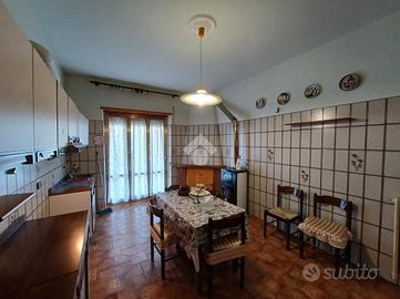 Nelle vicinanze del campo sportivo, all'interno di un piccolo stabile, proponiamo un appartamento di ampia metratura sito al primo piano composto da ingresso, soggiorno, cucina abitabile con camino, zona notte completamente separata dove troviamo due ampie camere da letto ed una terza camera più piccola e due bagni. L'immobile, sito in una zona immersa nel verde e silenziosa, misura 120 mq ca. e dispone di una balconata, di una cantina, giardino condominiale, riscaldamento autonomo a metano. Possibilità di acquisto di un appartamento sovrastante quello descritto da ultimare internamente. Una soluzione interessante per un doppio nucleo familiare.