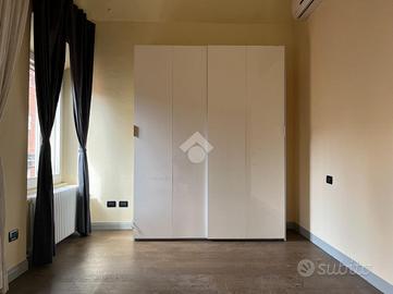 Appartamento signorile al terzo ed ultimo piano con ascensore, nel palazzo Giglioli, composto da sole tre unità abitative, tra via Savonarola ed Ugo Bassi, in centro storico. Ingresso arredabile, ampio salone affrescato, sala da pranzo con angolo cottura, camera da letto matrimoniale con camino, camera da letto singola e due bagni, uno con doccia ed uno con vasca. Possibilità di ricavare una terza camera da letto o studio. Ripostiglio esterno posto nello stesso piano dell'appartamento. L'immobile è sottoposto al vincolo storico-architettonico in quanto presenta affreschi nei soffitti. Porta blindata, videocitofono, zanzariere, condizionatore, infissi in legno con doppio vetro e pavimentazione in parquet. Cantina al piano terra e deposito biciclette comune. In Via Ugo Bassi, è presente, ad un prezzo aggiuntivo, un garage all'interno di un box seminterrato con accesso carrabile. Attualmente affittata a 1800euro mensili.