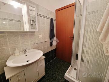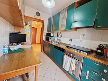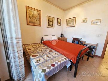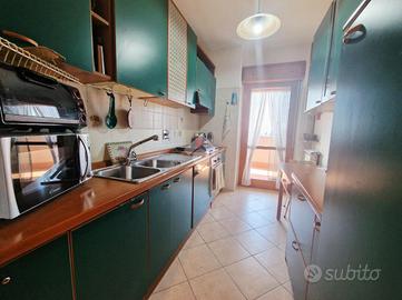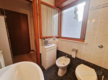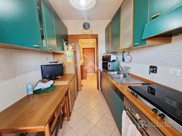 L'immobile si apre su un luminoso soggiorno dotato di cucinotto separato, entrambi con accesso diretto a un ampio balcone, perfetto per momenti di relax all'aperto. Un primo bagno con finestra e vasca completa la zona giorno.