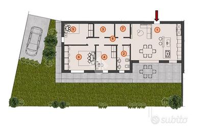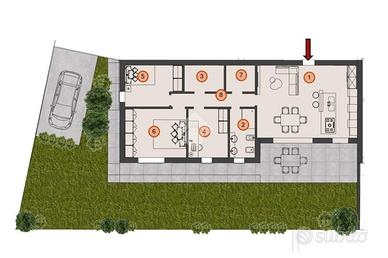 La soluzione proposta è un quadrilocale al pian terreno, caratterizzato da un'ampia zona living di 40 mq, tre camere da letto di cui la padronale di oltre 16 mq, due bagni ed un vano tecnico adibito a lavanderia.