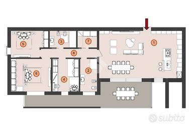 La soluzione proposta è un attico al piano secondo, dotato di ascensore, caratterizzato da un'introvabile zona living di circa 50 mq, tre camere da letto di cui la padronale di oltre 16 mq, due bagni ed un vano tecnico adibito a lavanderia.