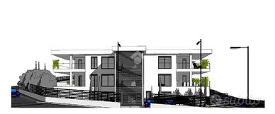 Figino Serenza Nuova Costruzione Residenze 'Il Veroccio': Attico di quattro locali al secondo piano con ampio terrazzo e balcone, camera matrimoniale con bagno 'in suite', due camerette, bagno ospiti e possibilità di box singolo e/o doppio in lunghezza.