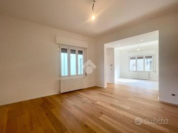 A completare la soluzione uno sgabuzzino, due bagni, di cui uno dotato di loggia e come accessorio la cantina.