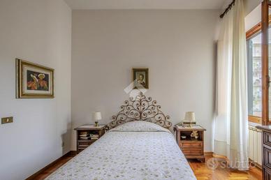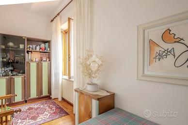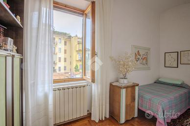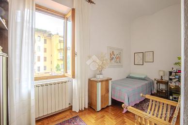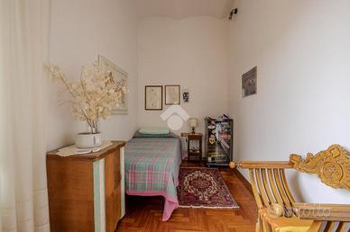 La zona notte ospita una camera matrimoniale e una camera singola, entrambe caratterizzate da pavimenti in parquet perfettamente conservati. La doppia esposizione e l'altezza del piano assicurano luminosità naturale, tranquillità e riservatezza. Il riscaldamento autonomo contribuisce a mantenere contenuti i costi di gestione condominiale.